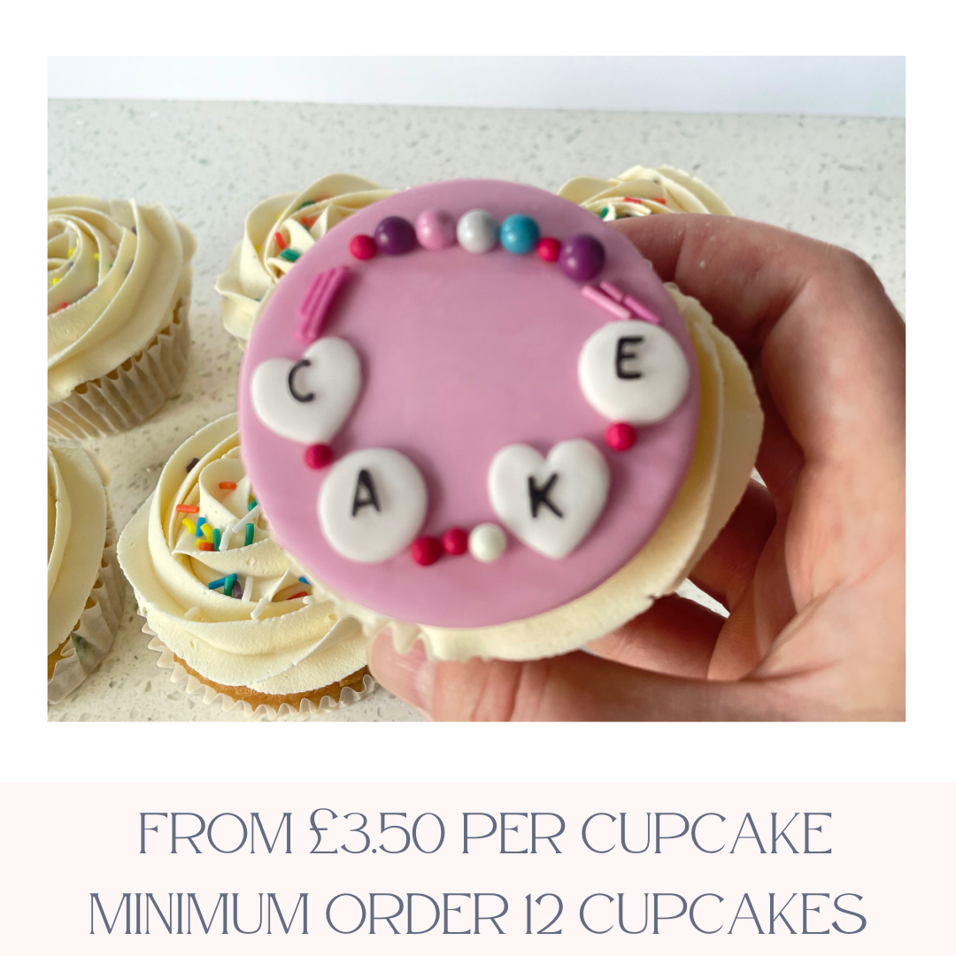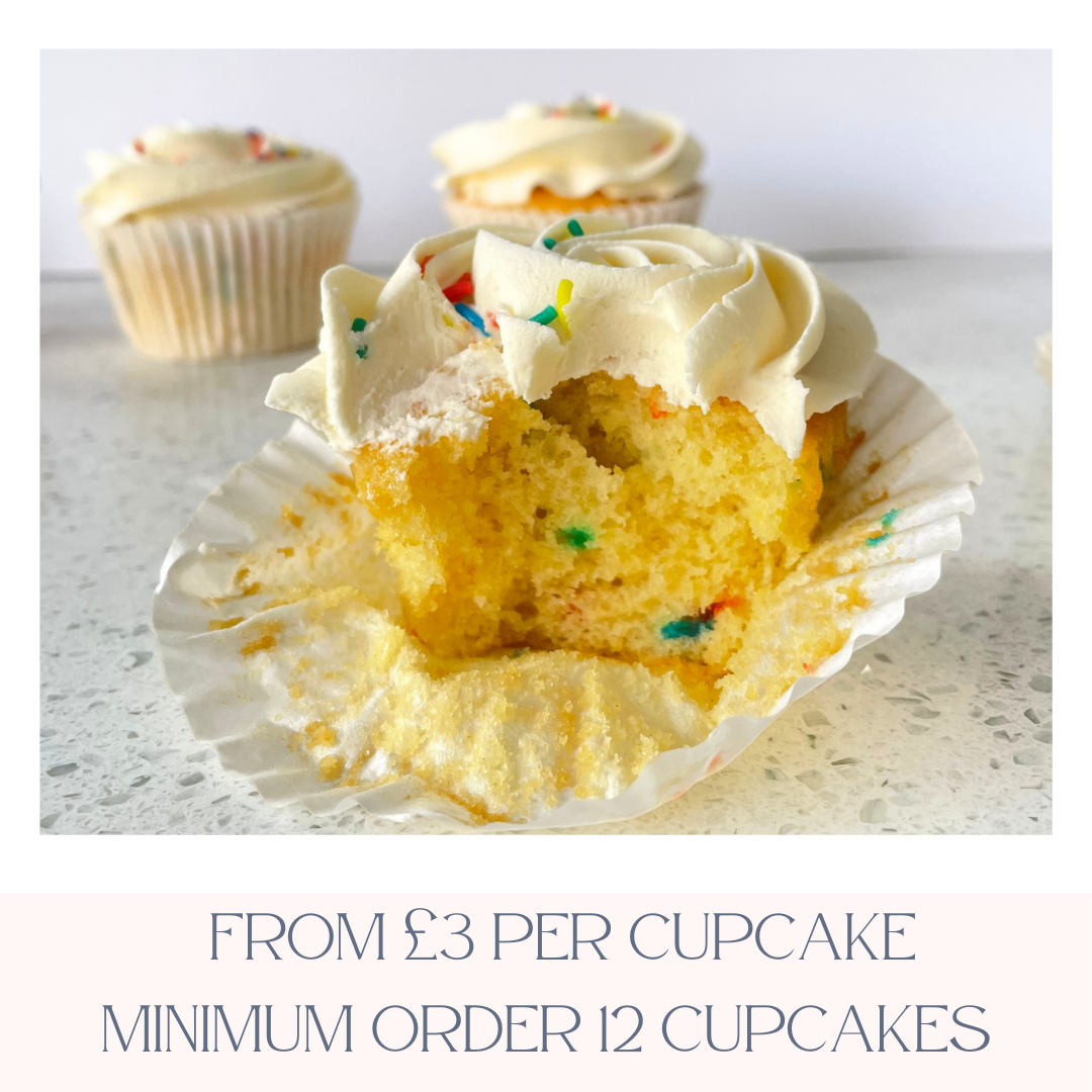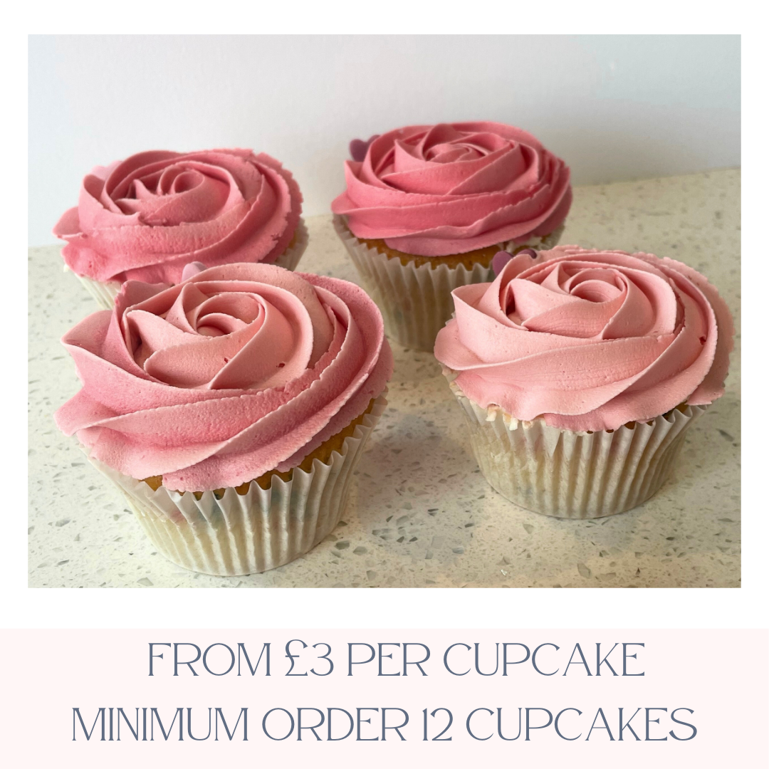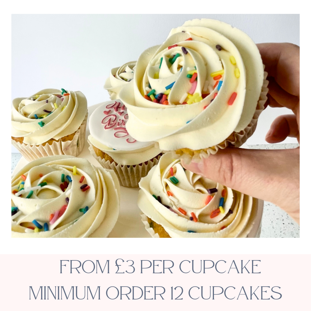 Cupcakes start from £3.00 per cupcake (minimum order 12 cupcakes). Below are some examples of decoration and prices for each style.